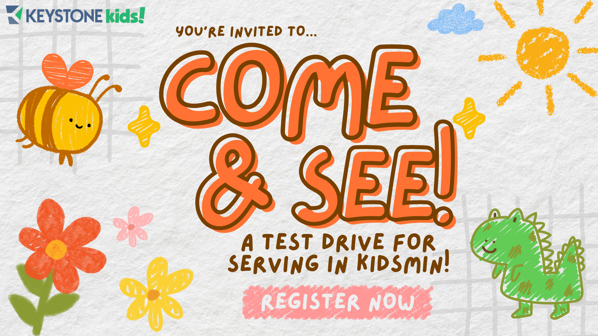 When registering, please select the date and service you would like to attend, then CHOOSE ONE Kids Min location you will be visiting.